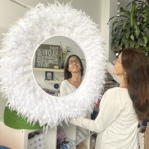 Decoration with mirror and feathers MIRROR FEATHERS