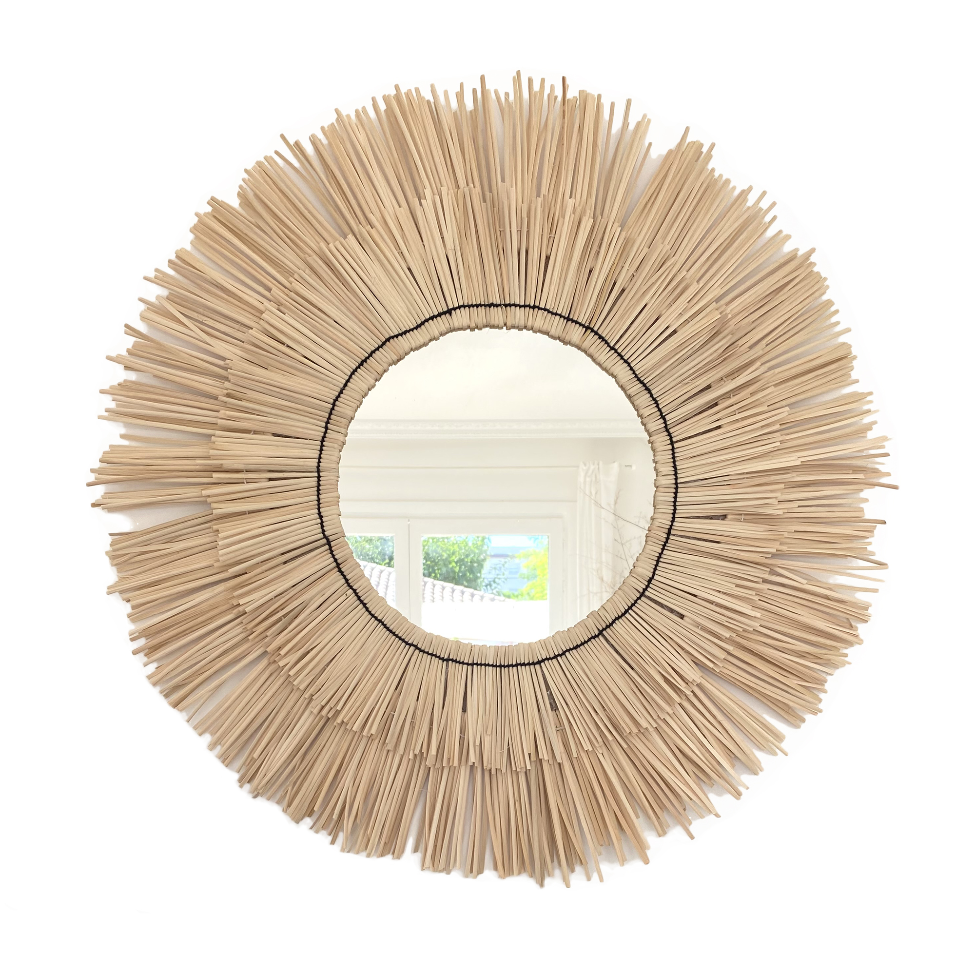 El espejo de pared con fibra natural CANCUN se caracteriza por su estilo mediterráneo y rústico. Es ideal para acompañar la decoración de tu viviendo y crear el efecto WOW en todos tus invitados.