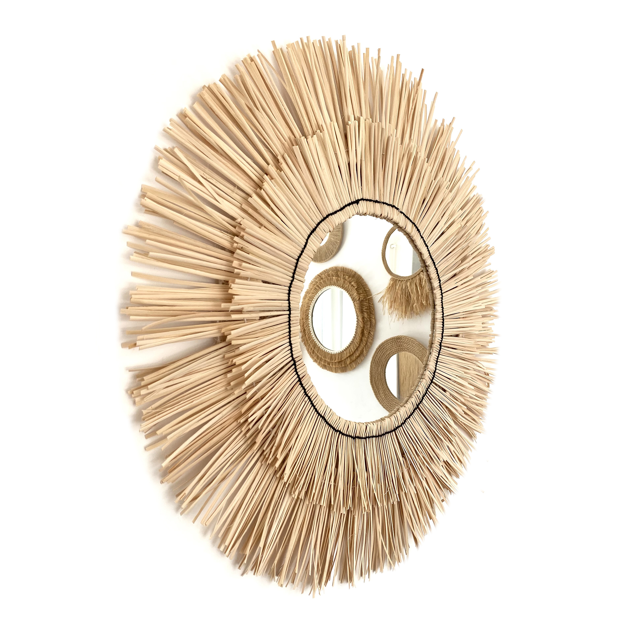 La creación de este espejo nace a inspirado en el que se conoce como la artesanía de la palma. Es el arte de elaborar piezas de uso cotidiano a partir de hojas de palma. Entre ellos encontrábamos tejidos, bolsas, cuerdas, etc. con el tiempo han pasado a ser objetos más decorativos entre los cuáles encontramos nuestro espejo CANCUN.