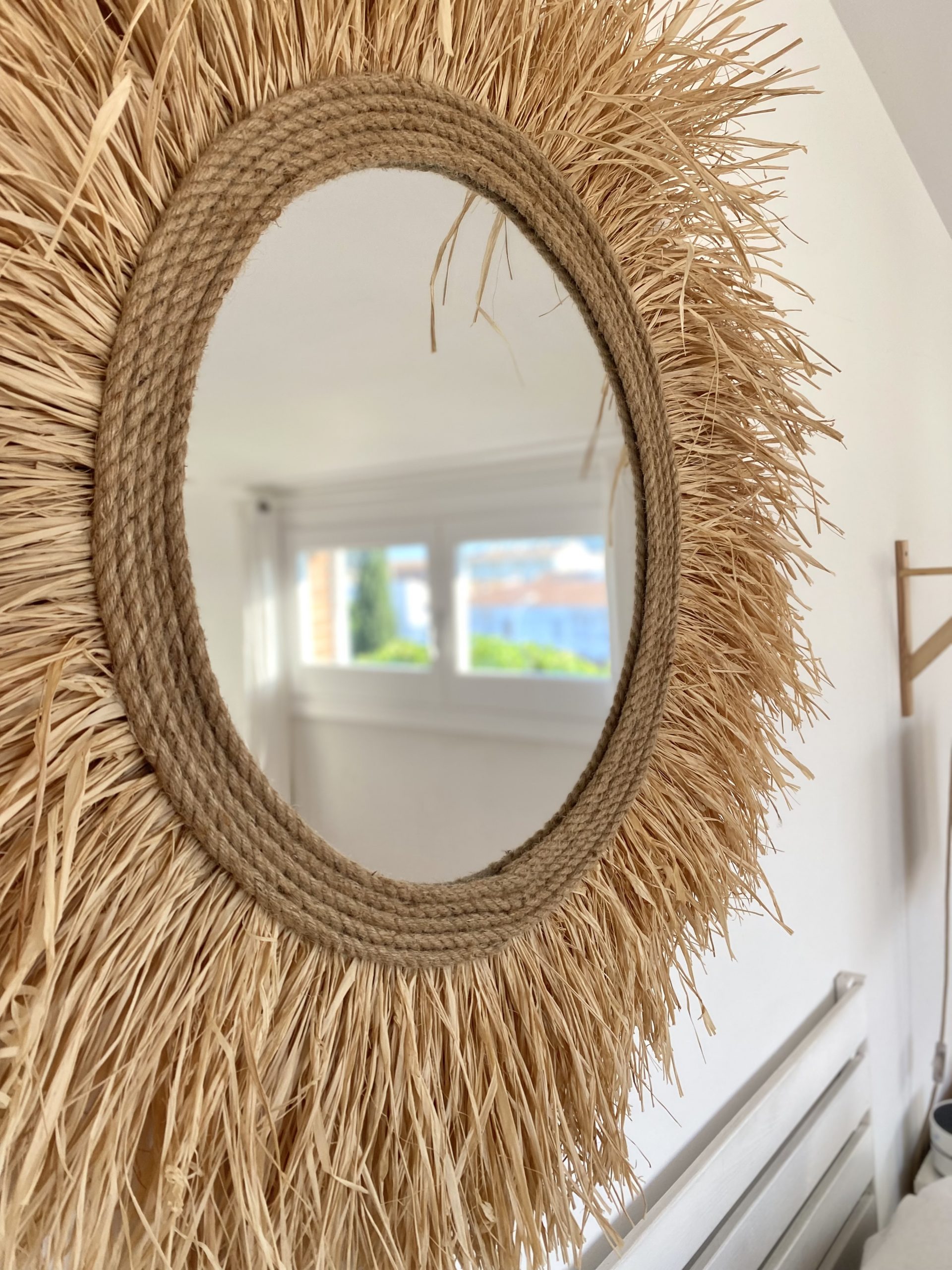 La versatilidad del espejo de pared con rafia y jute RAFFIA CORD es notable. Su diseño neutral y natural se adapta perfectamente a una amplia gama de estilos decorativos, desde lo contemporáneo hasta lo rústico o bohemio. Sea cual sea tu estilo, este espejo añadirá un toque especial a tu espacio.