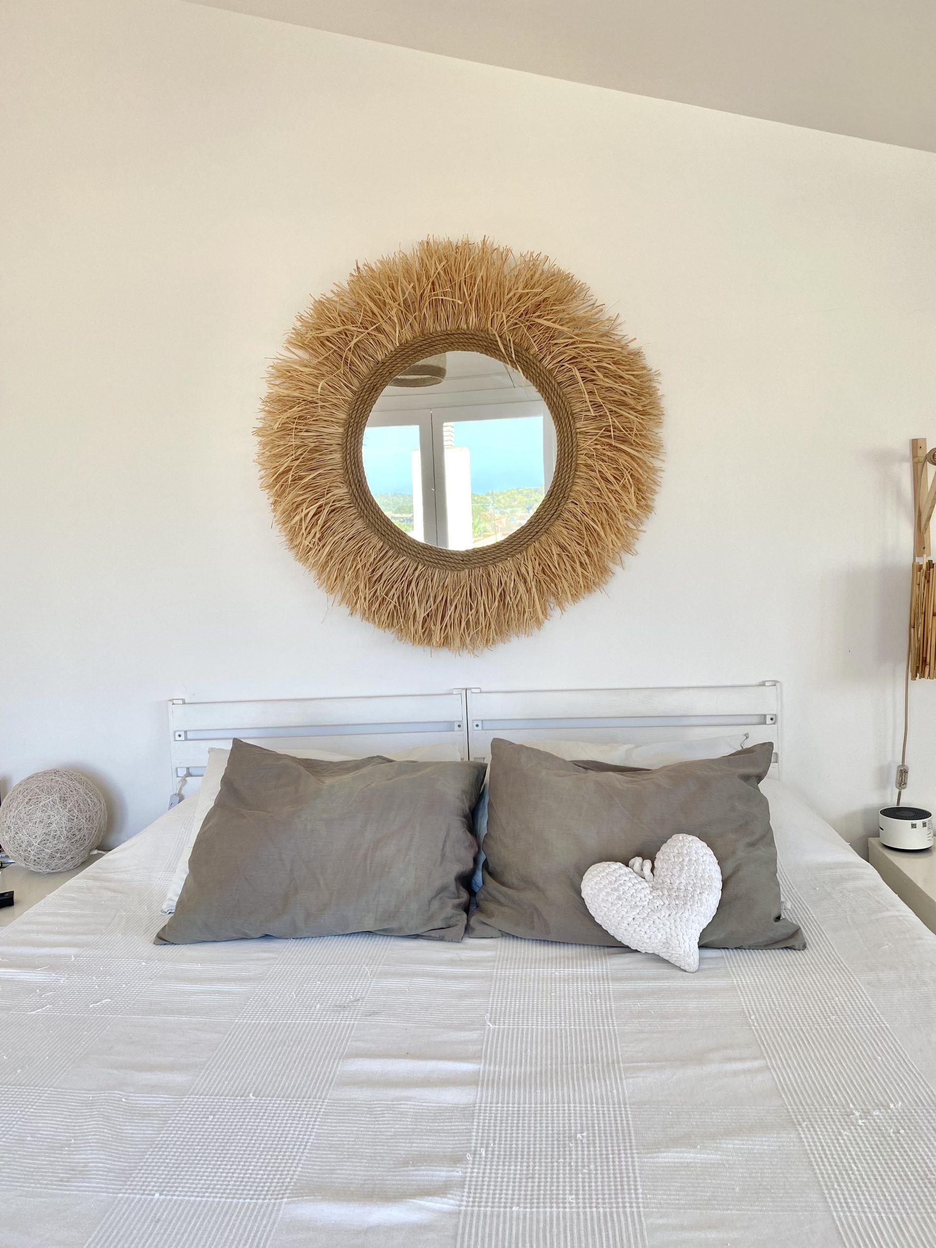 La esencia de nuestro espejo RAFFIA CORD reside en su cuidadosamente elaboración. Las tiras de rafia, entrelazadas hábilmente, crean un marco que destaca la belleza de la simplicidad, mientras que la cuerda de yute que rodea el espejo añade un toque orgánico y distintivo.